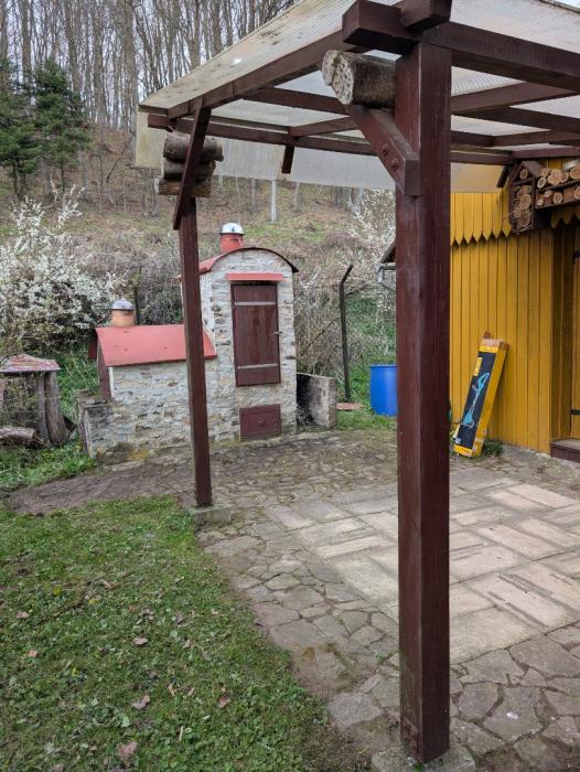 Wybudowana wedzarnia z piecem chlebowym i paleniskiem do grillowania.