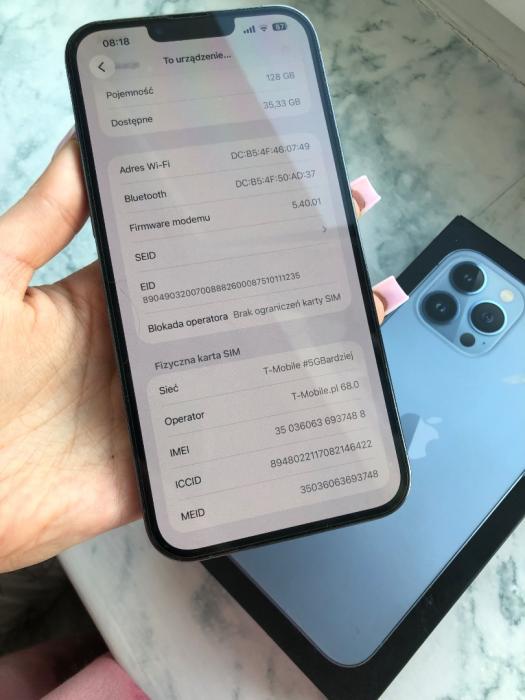 Sprzedam iPhone 13 Pro Max 128 GB w kolorze Sierra Blue. Telefon jest w pełni sprawny – wszystkie funkcje działają bez zarzutu, w tym Face ID, głośniki, aparat oraz pozostałe podzespoły.