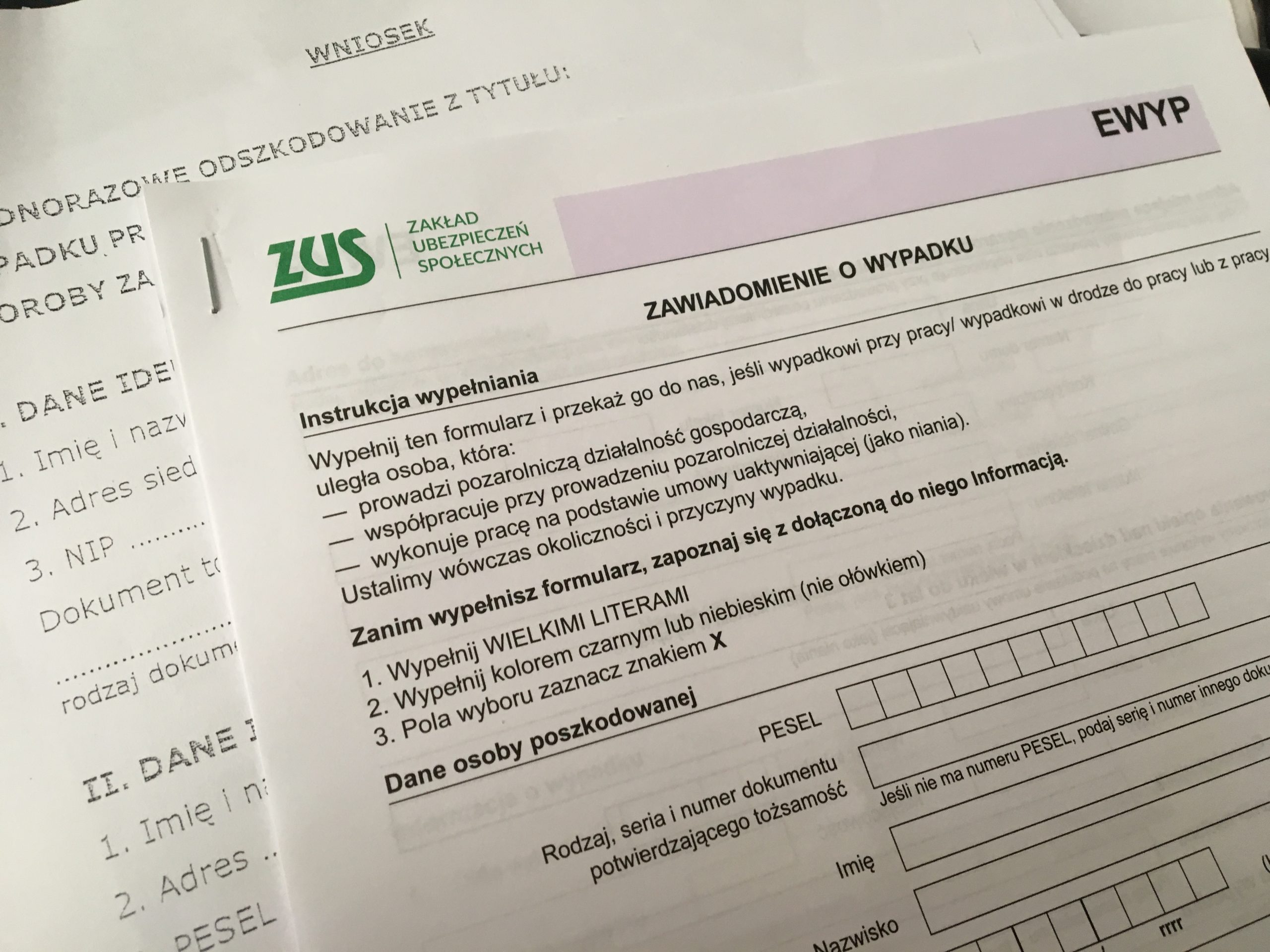 W celu uzyskania odszkodowania, należy złożyć do Zakładu Ubezpieczeń Społecznych kompletny wniosek.